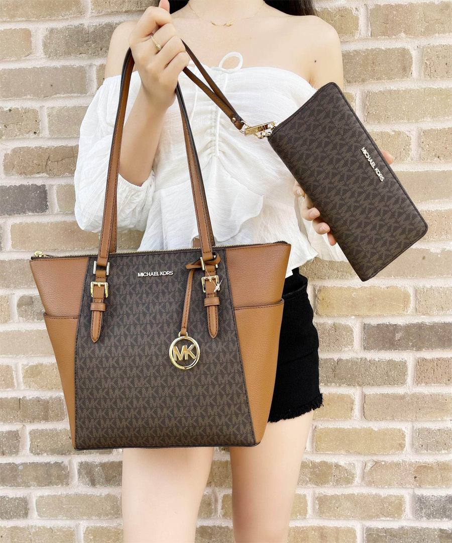 Cartera Crossbody Michael Kors Jet Set Large Printed Logo Bag Café